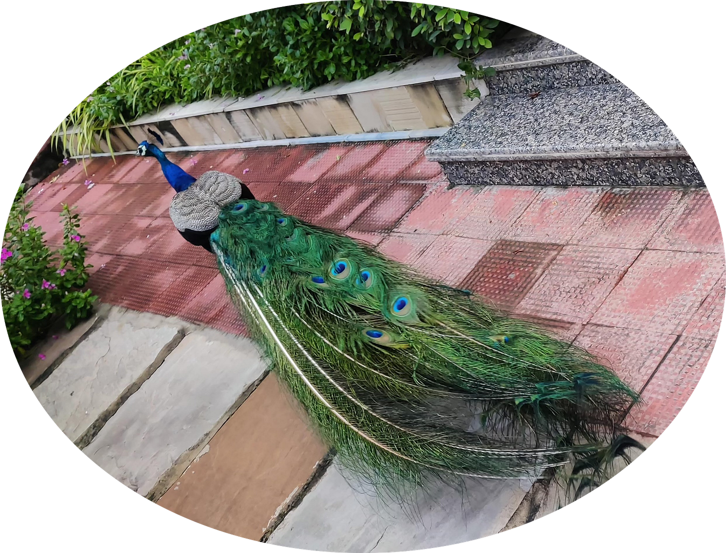 A gorgeous peacock wandered into the garden for a luscious morning feast while I snoozed under my warm winter blanket.